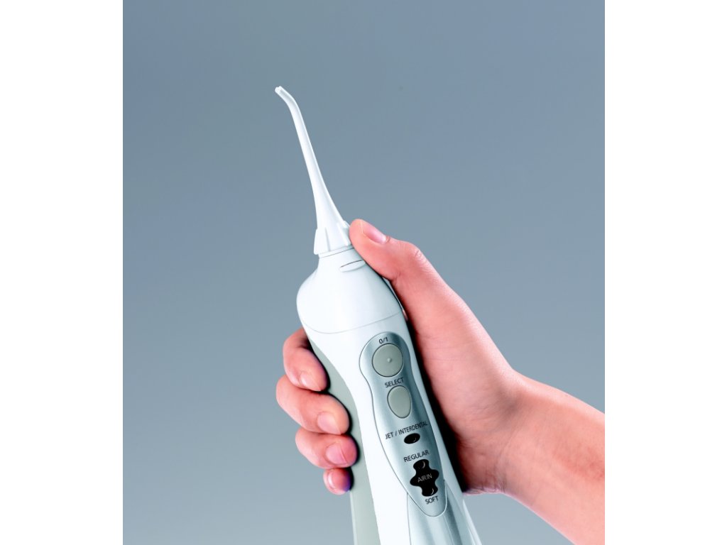 3 stupně nastavení – jemnější a silnější proud vody, režim air jet, nádobka na vodu 130 ml.