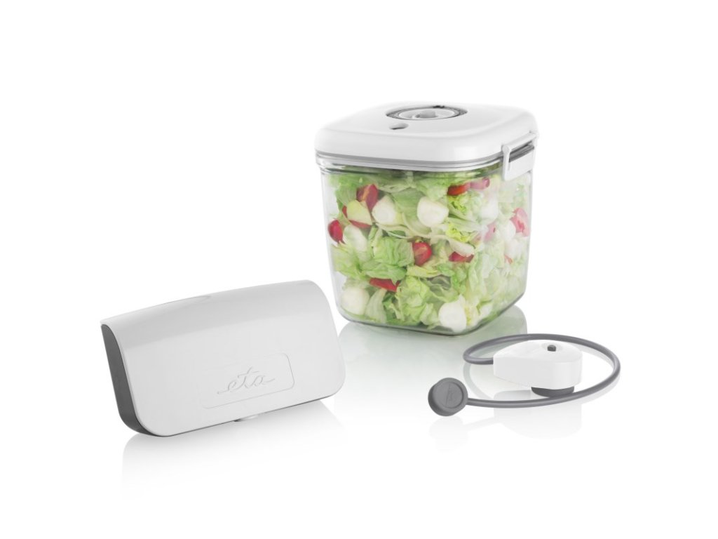 Vakuovačka a vakuový box Vital ke kuchyňským robotům ETA pro uchovávání potravin a zajištění až 5x delší trvanlivosti. Síla odsávání max. 0,6 bar