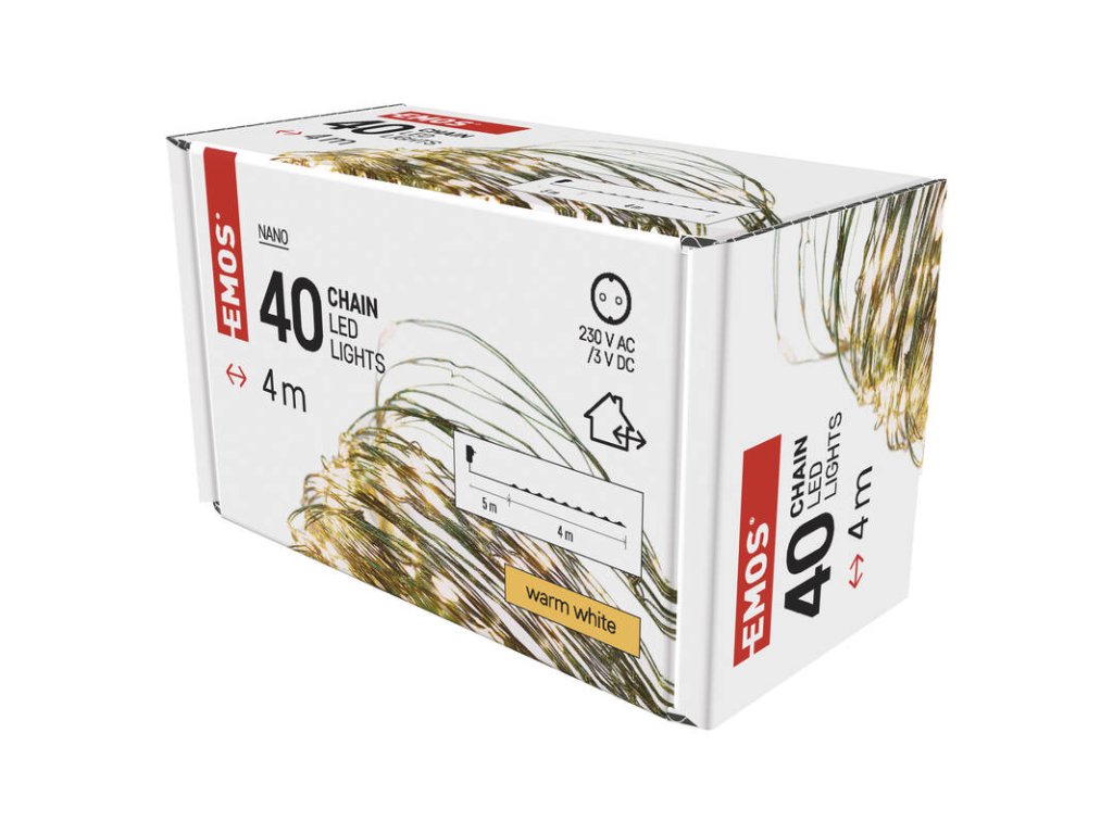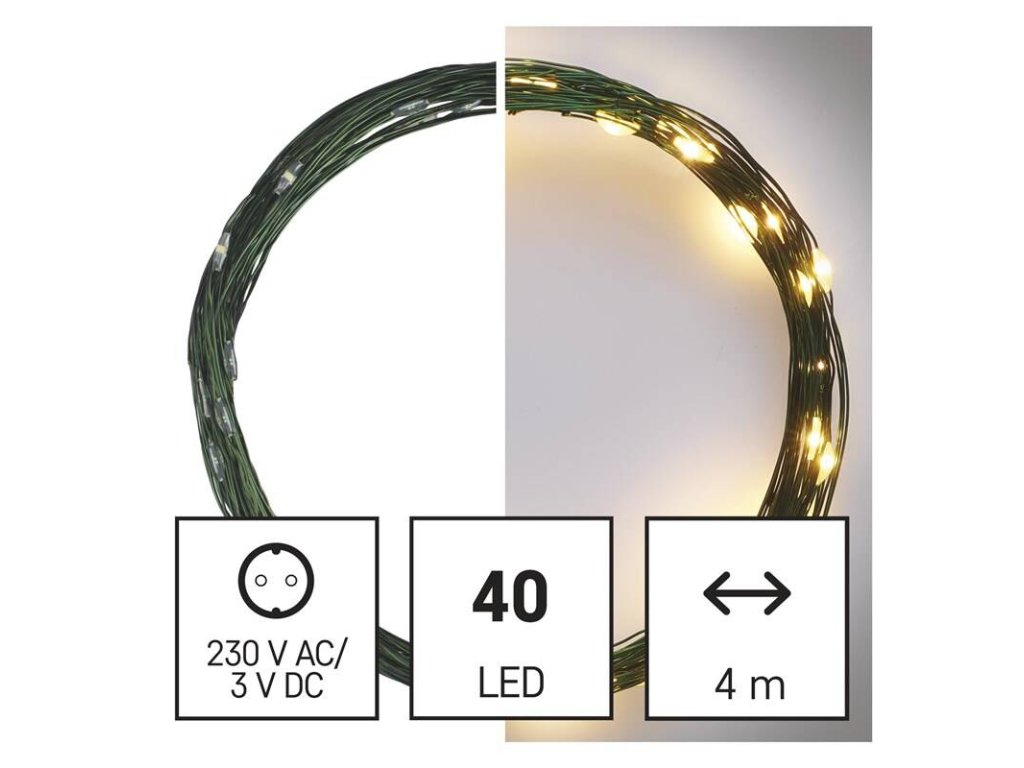 Vánoční osvětlení EMOS 40 LED nano řetěz zelený, 4 m, venkovní i vnitřní, teplá bílá, časovač (D3AW03)