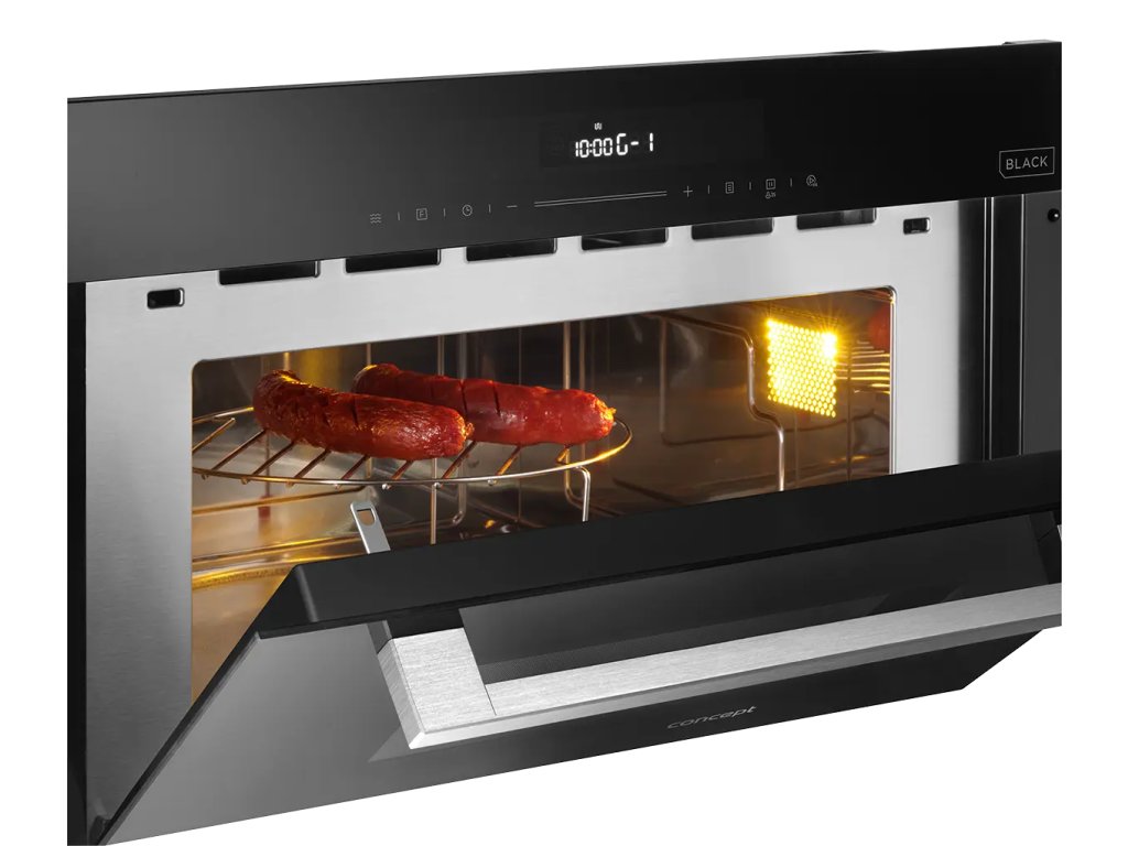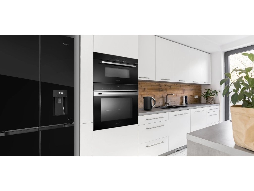 Vestavná mikrovlnná trouba Concept MTV8034bc v provedení černého skla perfektně zapadne do vaší kuchyně vybavené spotřebiči v designové linii Black. V komínové sestavě skvěle doplní vestavnou troubu Concept ETV8560bc. Jednotný design včetně moderního způsobu výklopného otevírání dveří udělá z obou spotřebičů dokonale sladěné duo.