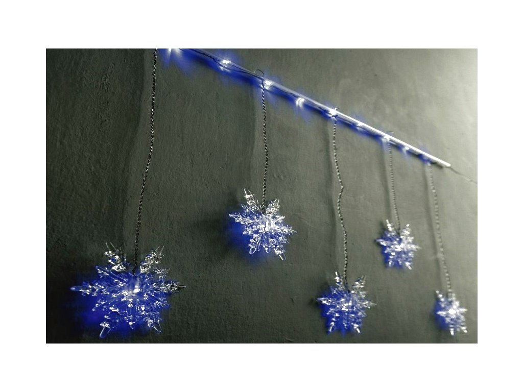 Vločky s LED VL-619, 5 vloček na závěsné tyči