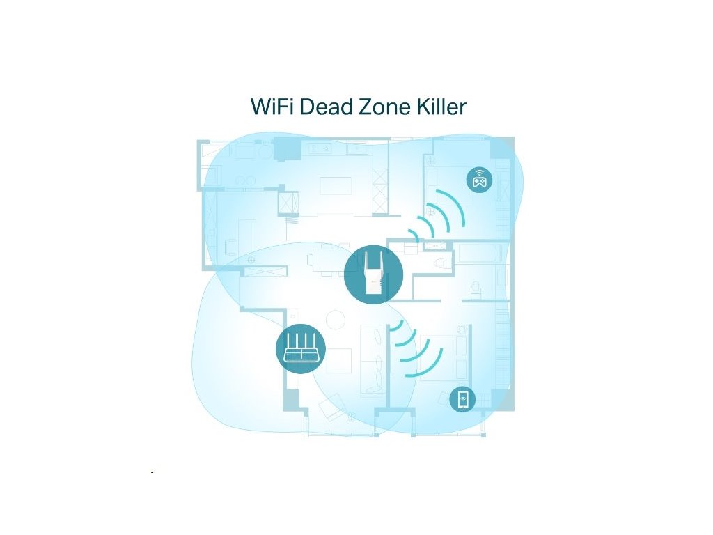 - Wi-Fi extender TP-Link RE605X poskytuje výrazné rozšíření dosahu až o 1 500 m²