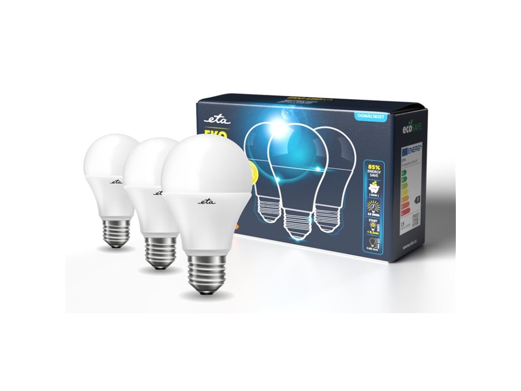 Oproti klasickým žárovkám, dokáže ETA LED žárovka, díky své nízké spotřebě, ušetřit až 90% spotřeby energie. V praxi vám tak uspoří až několik set korun za rok. Investice do LED technologie se tedy za pár měsíců vrátí zpět. Zařazeny jsou do kategorie A+.