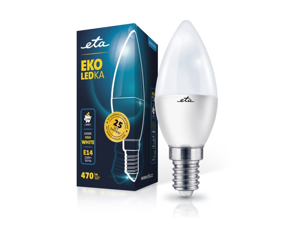 Žárovka LED ETA EKO LEDka svíčka 5,5W, E14, studená bílá