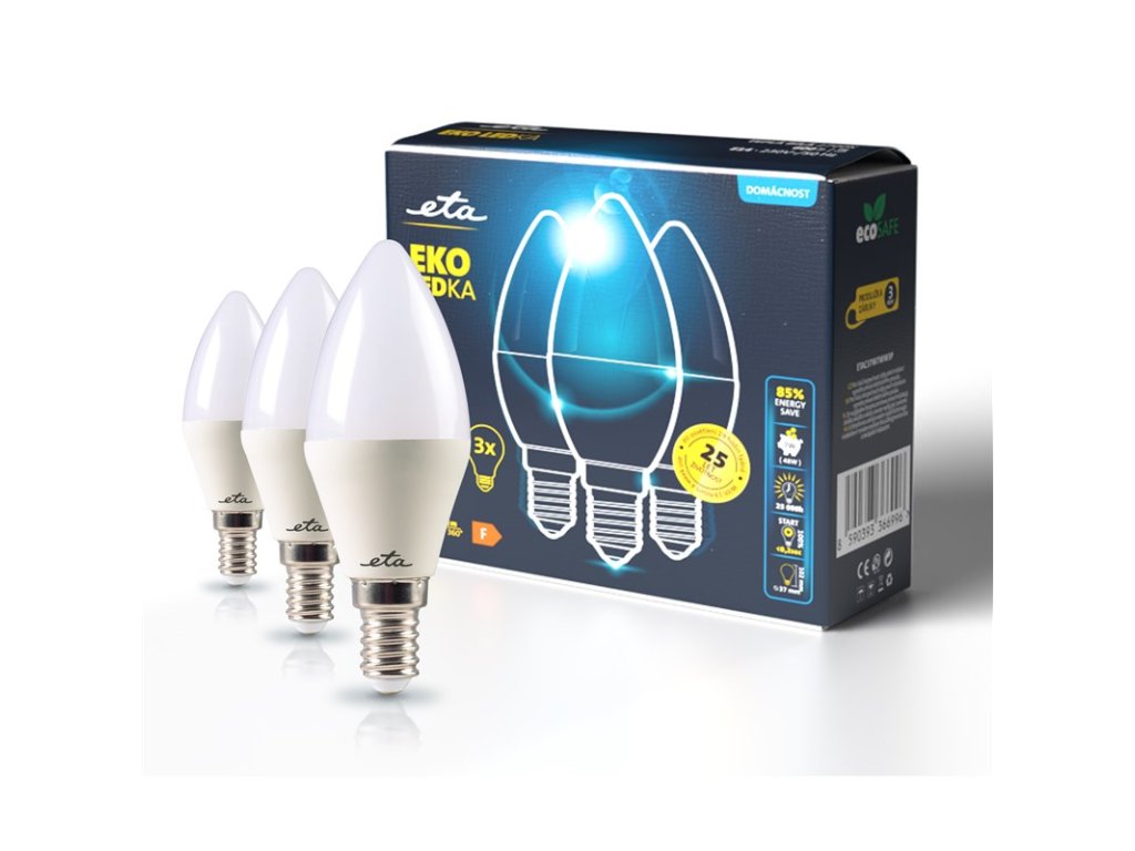 Oproti klasickým žárovkám, dokáže ETA LED žárovka, díky své nízké spotřebě, ušetřit až 90% spotřeby energie. V praxi vám tak uspoří až několik set korun za rok. Investice do LED technologie se tedy za pár měsíců vrátí zpět. Zařazeny jsou do kategorie A+.