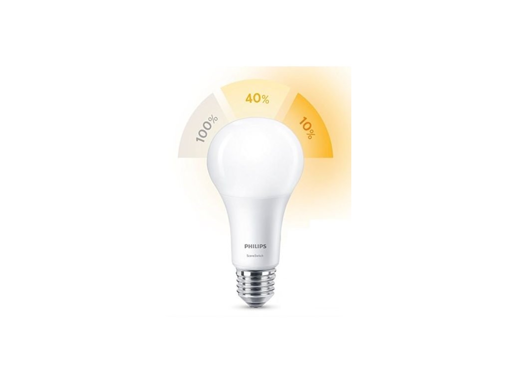 Žárovka SceneSwitch od Philipsu nabízí tři režimy svícení. Funguje bez použití stmívačů či speciálních vypínačů, režim svícení přepínáte svým standardním vypínačem. U tohoto modelu přepínáte mezi třemi variantami teplého světla: 2 200 K (extra hřejivá bílá), 2 500 K (hřejivá bílá) a 2 700 K (teplá bílá).