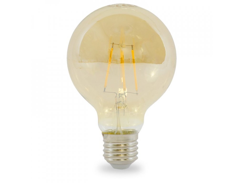Žárovka LED Tesla globe G80 filament, E27, 5W, teplá bílá