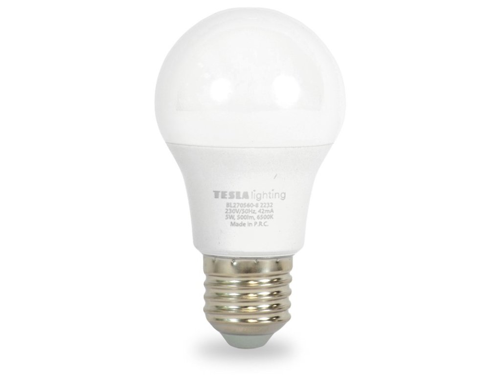 LED žárovka od tradiční české společnosti s více než 100letou historií TESLA lighting. Tato žárovka je určena pro svítidla s paticí E27. Vyzařuje studené bílé světlo s chromatičností 6500K a svítivostí 500 lm, které je ideální k podpoření aktivity, proto lze tuto žárovku doporučit zejména do kuchyně, předsíně, technické místnosti a garáže. Díky moderní a efektivní LED technologii nahradí s příkonem 5 W klasickou 42W žárovku a ušetří Vám až 85 % nákladů na energii. Jistě také potěší dlouhá životnost až 25 000 hodin a 15 000 spínacích cyklů. Kvalita produktu je podpořena rozšířenou zárukou na 3 roky.