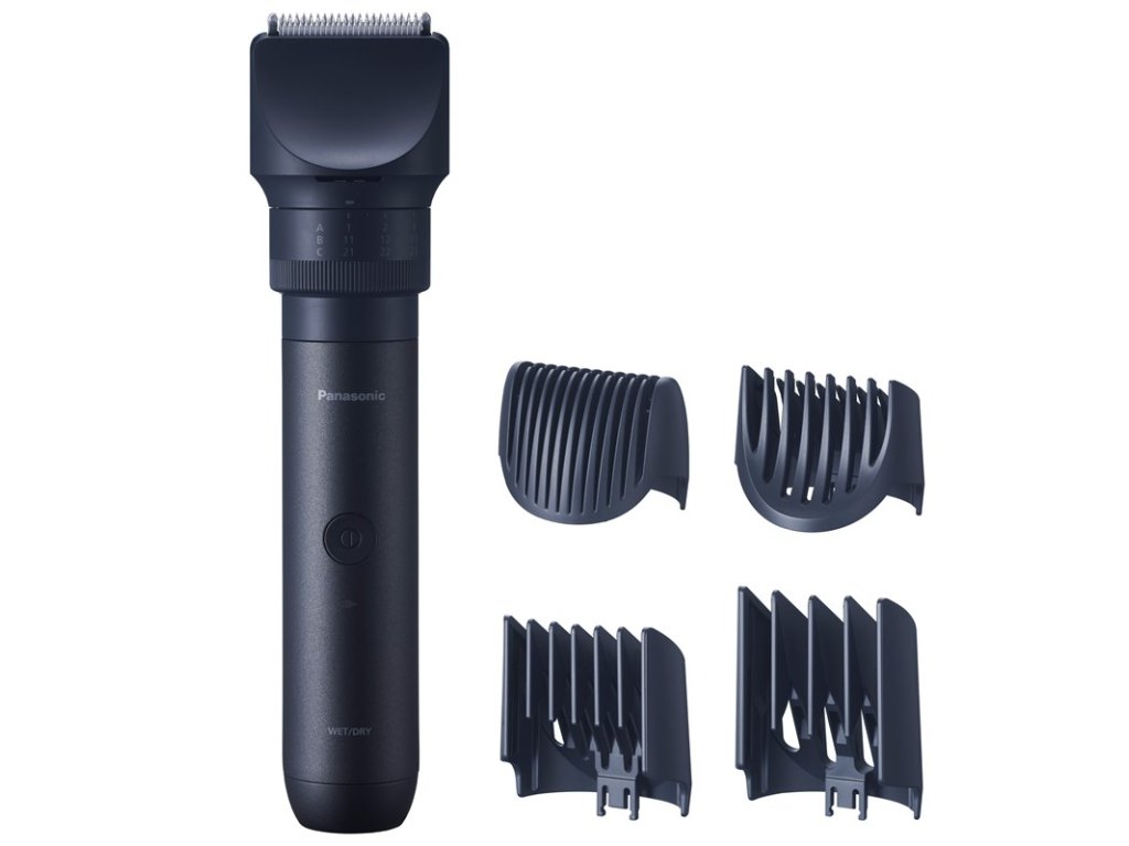 Na vousy, vlasy, tělo, 58 nastavení délek sřihu 0,5 mm až 30 mm otočným voličem, 4 zastřihovací nástavce, WET/DRY.