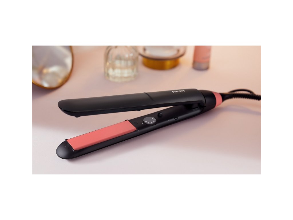 S žehličkou na vlasy s technologií ThermoProtect upravíte váš účes snadno a rychle. Tato technologie zajistí rovnoměrnou distribuci tepla do plochy destiček bez nežádoucího přehřívání. Požadovaného hladkého účesu docílíte snadno díky dlouhým destičkám napuštěným keratinem. Díky rychlému zahřátí žehličky a připraveností k provozu již za 30 sekund můžete začít upravovat účes téměř okamžitě.