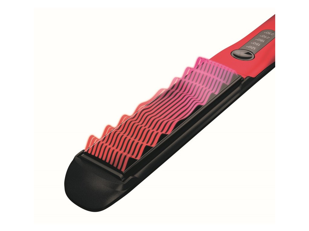 Díky extra silným pětivrstvým keramickým destičkám, žehlička snadno klouže po vlasech. Keramický povrch rovnoměrně vede teplo a dokonalého výsledku tak dosáhnete mnohem rychleji. Vlasy tak dostanou minimální tepelný zásah. Vysoký obsah turmalínu navíc uvolňuje záporné ionty, čímž zvyšuje přirozenou vlhkost vlasů.
